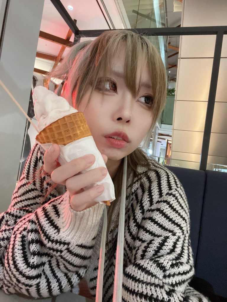 原宿ライブの帰りアイス食べたよん🍨いちごミルクに金箔乗ってて可愛かった、いちごミルク好き🍓