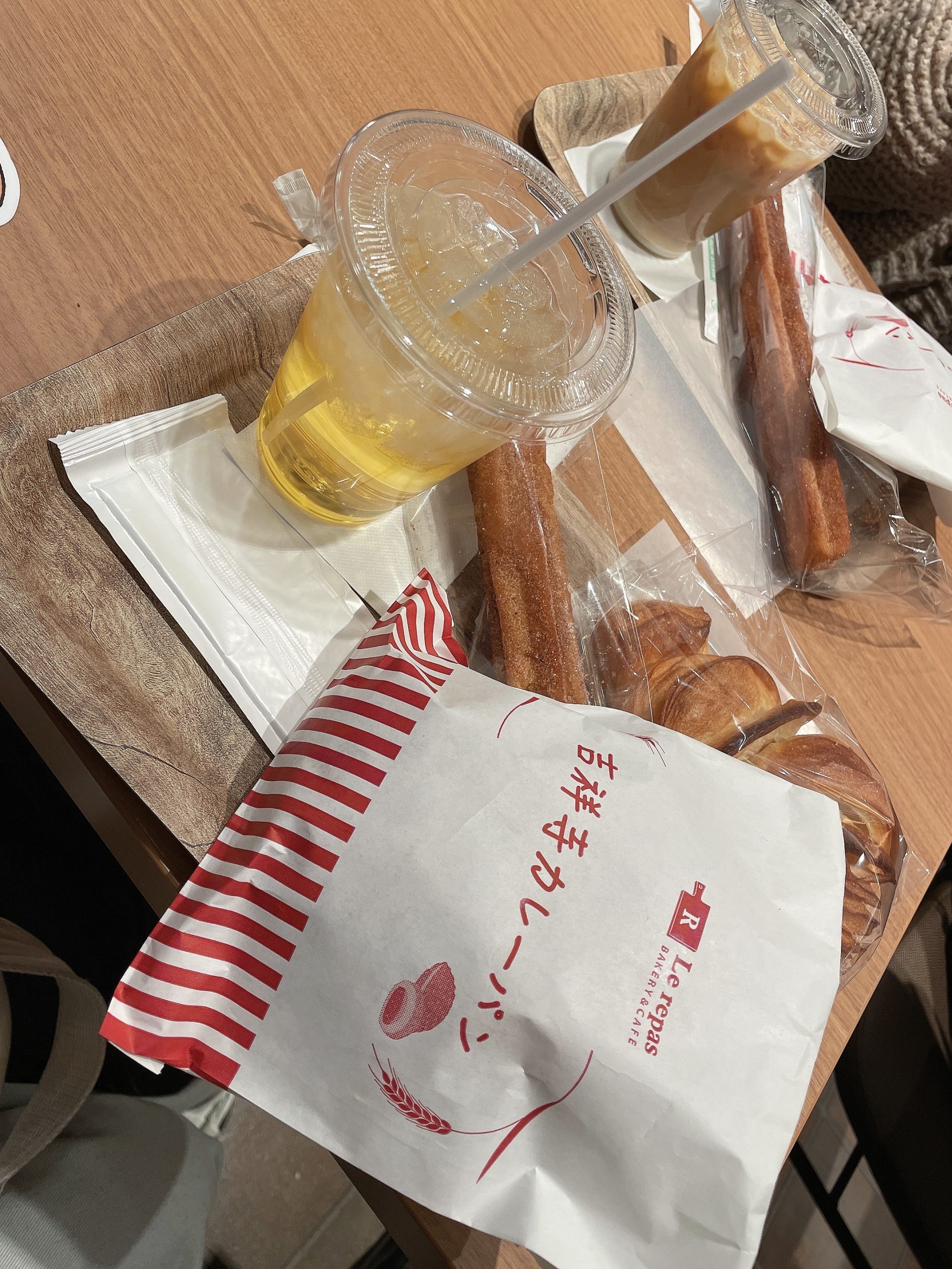 吉祥寺のパン屋さんに行ったよ〜!カレーパン2024年のグランプリなんだって🍞チュロスとカレーパンとデニッシュ。美味しかった〜🙌✨商店街散策、今度時間があればしてみたい❕