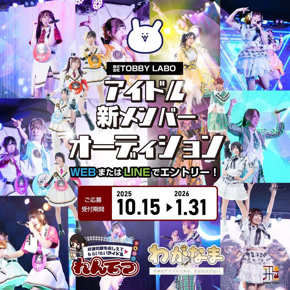 株式会社TOBBY LABO(トビーラボ)で活動してくださるアイドル志望の方の募集を開始いたしました。(2025年10月15日~2026年1月31日までを予定)