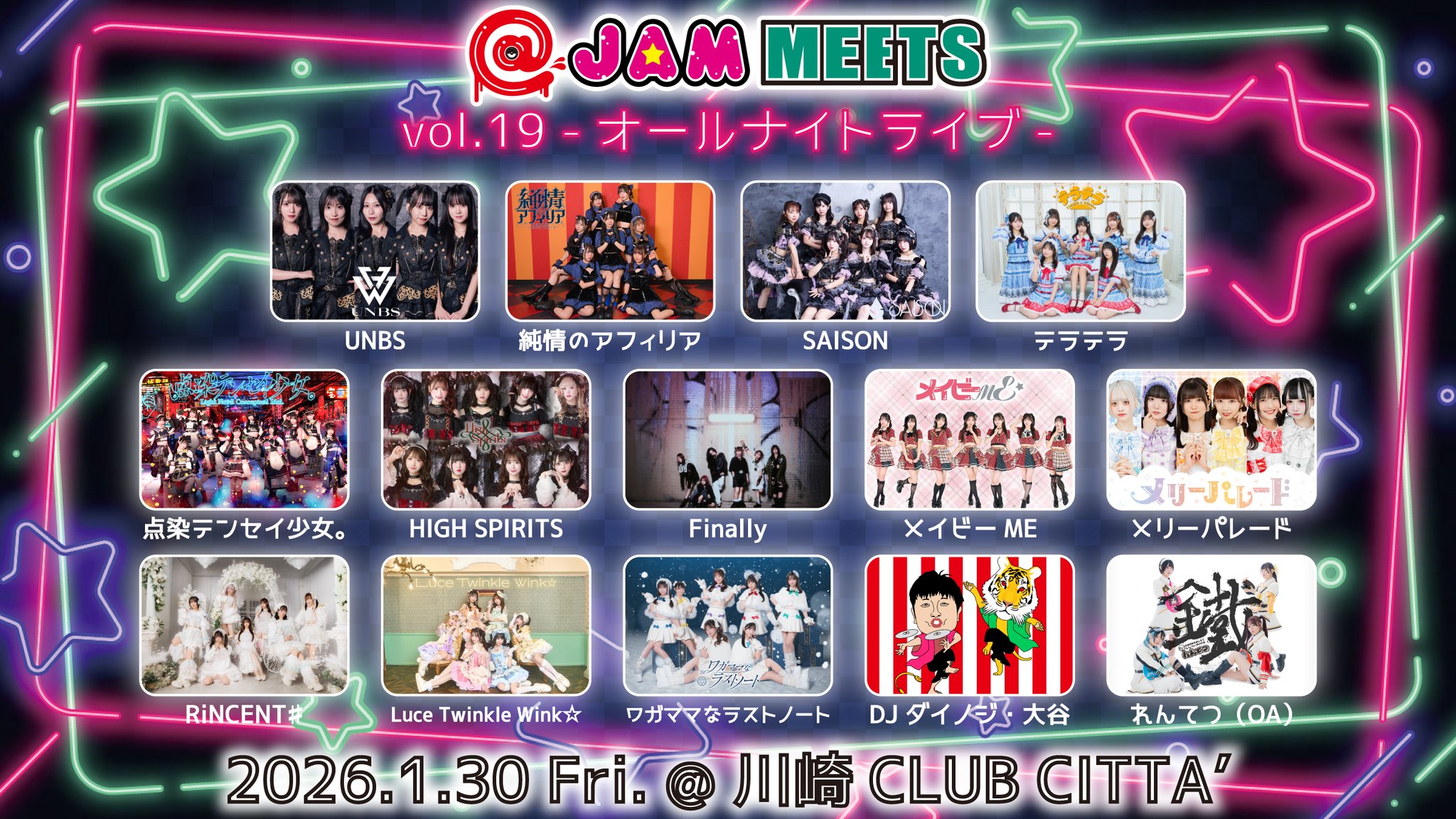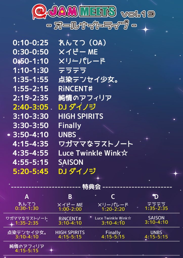 今月30日のアトジャのオールナイトはこれオープンして10分でうちらの出番やから、みんな入場には気をつけてね!!!