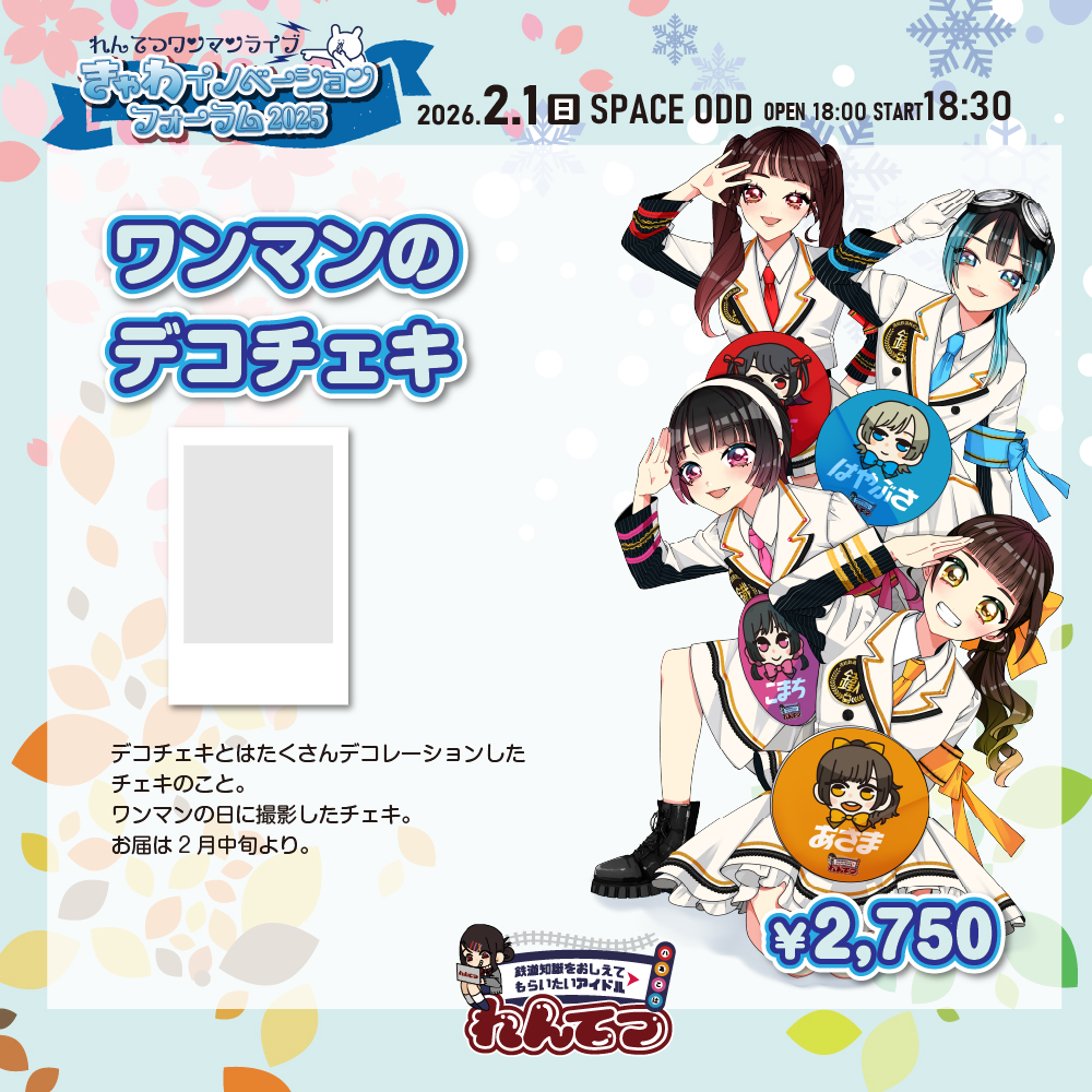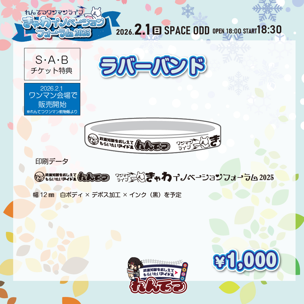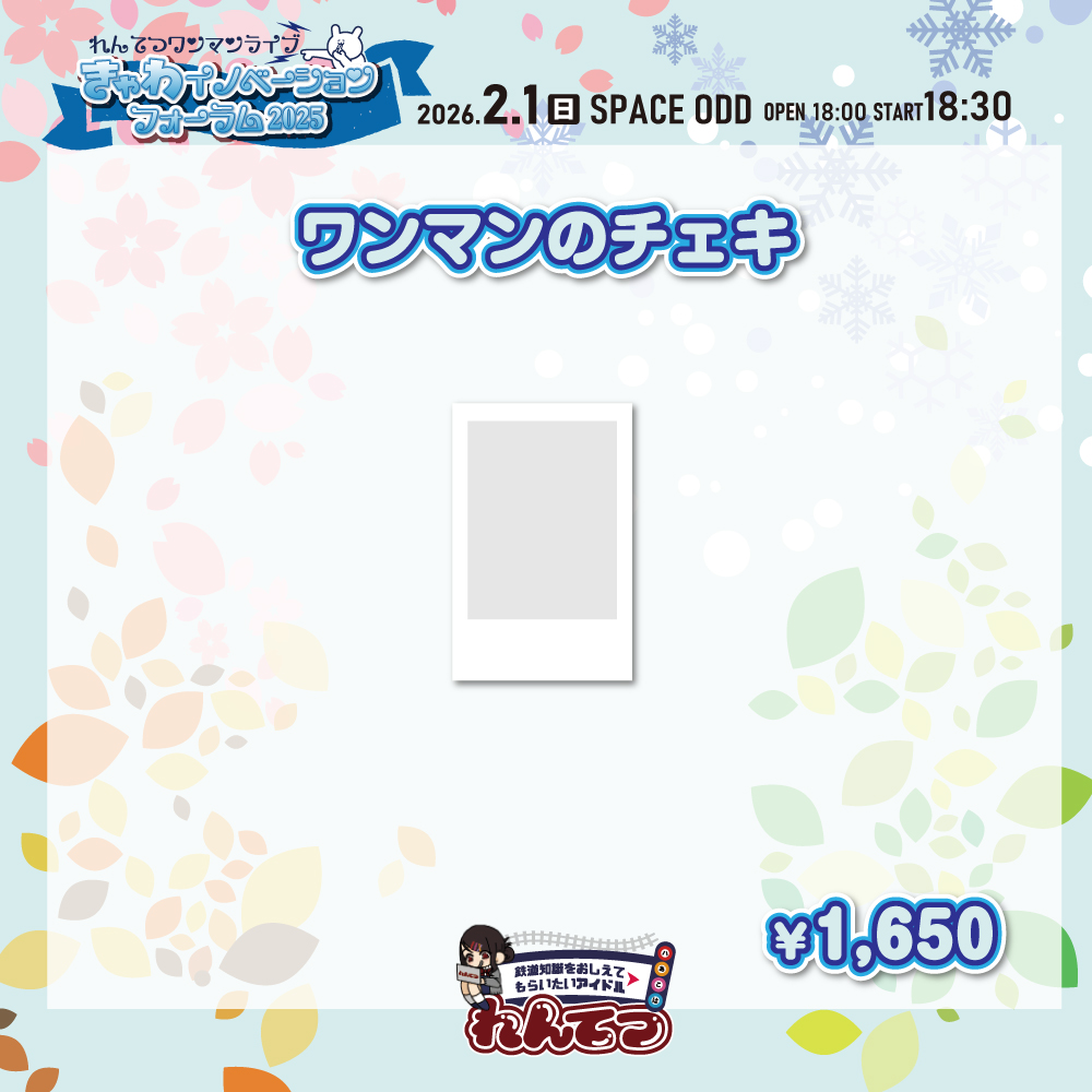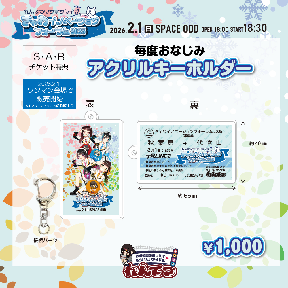 特典 優先入場/最前エリア/物販チェキ列特急券∞/メモリアルなグッズ(キーホルダー、ラバーバンド)/後日れんてつかふぇで開催されるアフターパーティーご招待