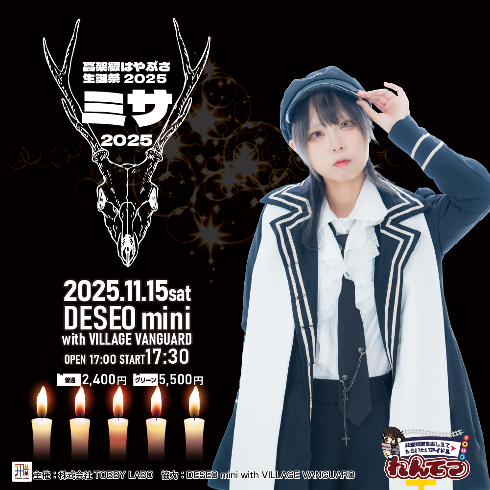 料金 Sチケット¥5,500(はやぶさオリジナルグッズ付)/一般¥2,400 ※各別途1Drink