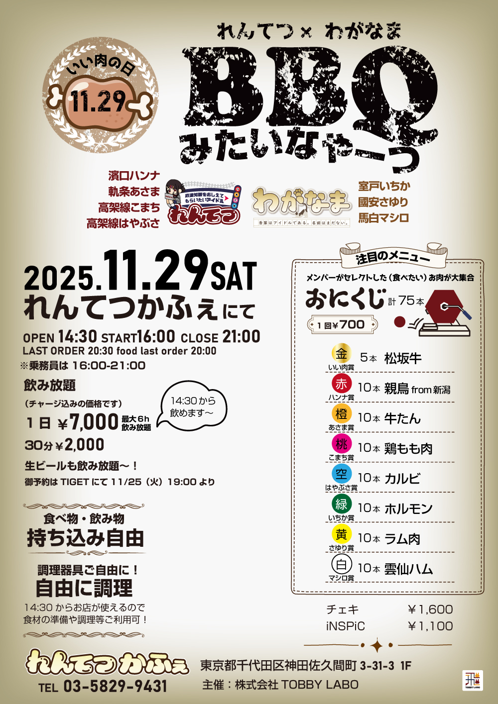 おにくじ 1回¥700 メンバーセレクトの食べたい肉を引き当てよう!
