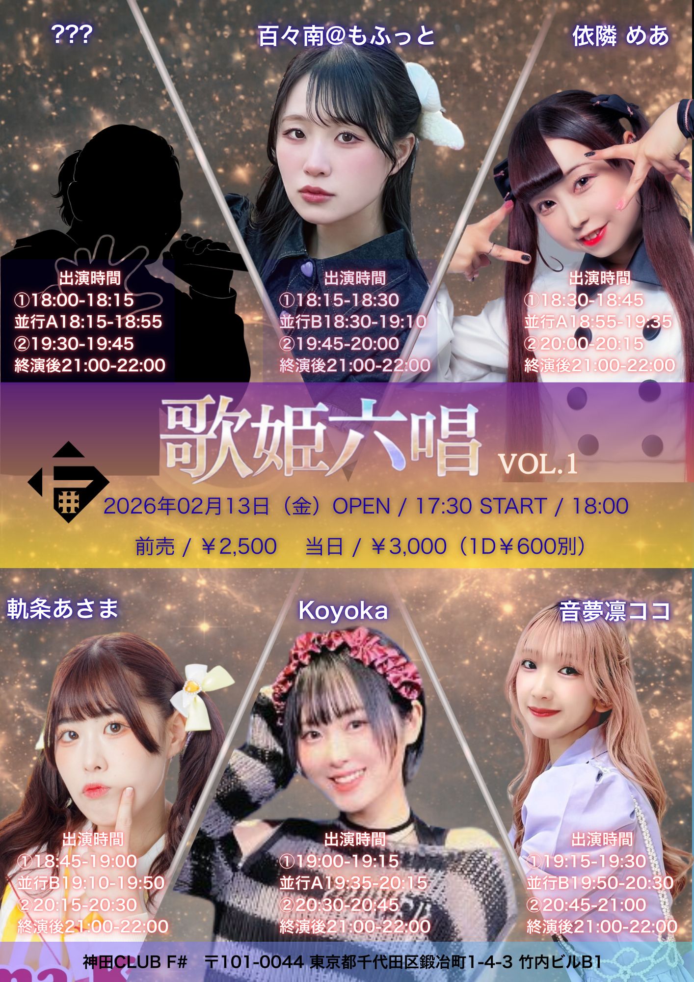 出演者 Koyoka ,音夢凛ココ .百々南@もふっと,依隣 めあ,軌条あさま,他(全6組予定)