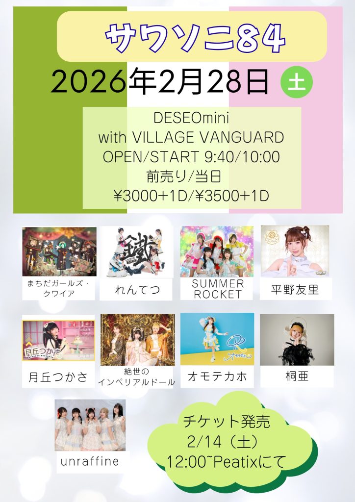予約URL 2/14(土)12:00~Peatixにて