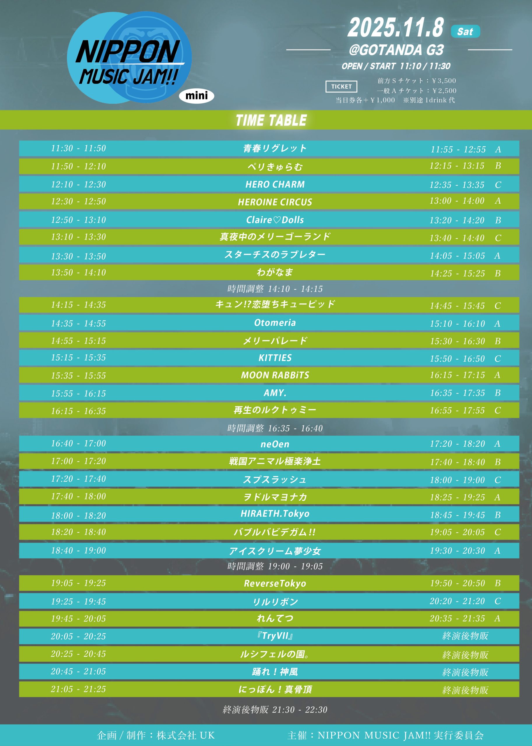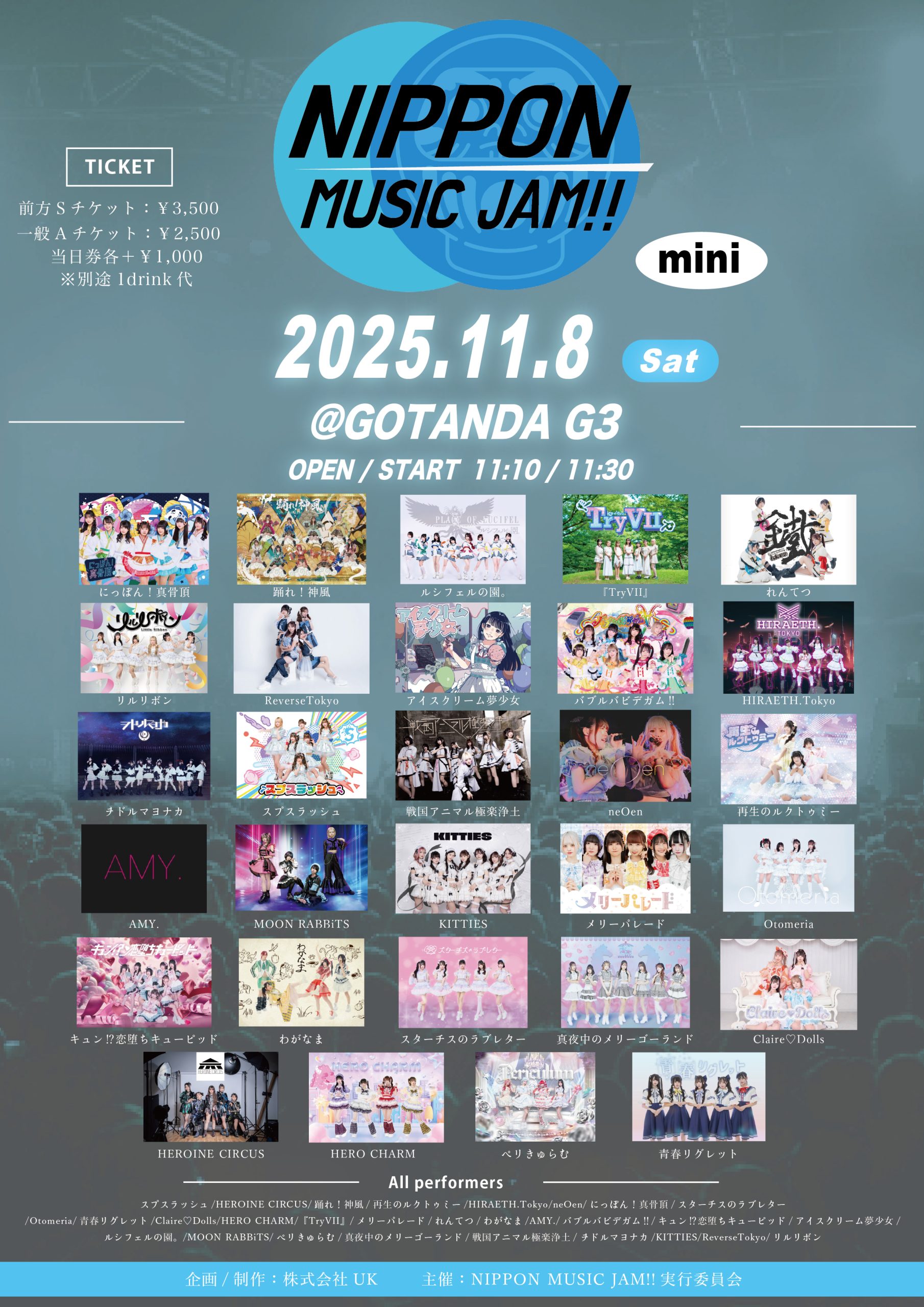 スプスラッシュ/HEROINE CIRCUS/踊れ!神風/再生のルクトゥミー/HIRAETH.Tokyo/neOen/にっぽん!真骨頂/スターチスのラブレター/Otomeria/青春リグレット/Claire♡Dolls/HERO CHARM/『TryVII』/メリーパレード/れんてつ/わがなま/AMY./バブルバビデガム‼/キュン⁉恋堕ちキューピッド/アイスクリーム夢少女/ルシフェルの園。/MOON RABBiTS/ペリきゅらむ/真夜中のメリーゴーランド/戦国アニマル極楽浄土/ヲドルマヨナカ/KITTIE/ReverseTokyo/リルリボン
