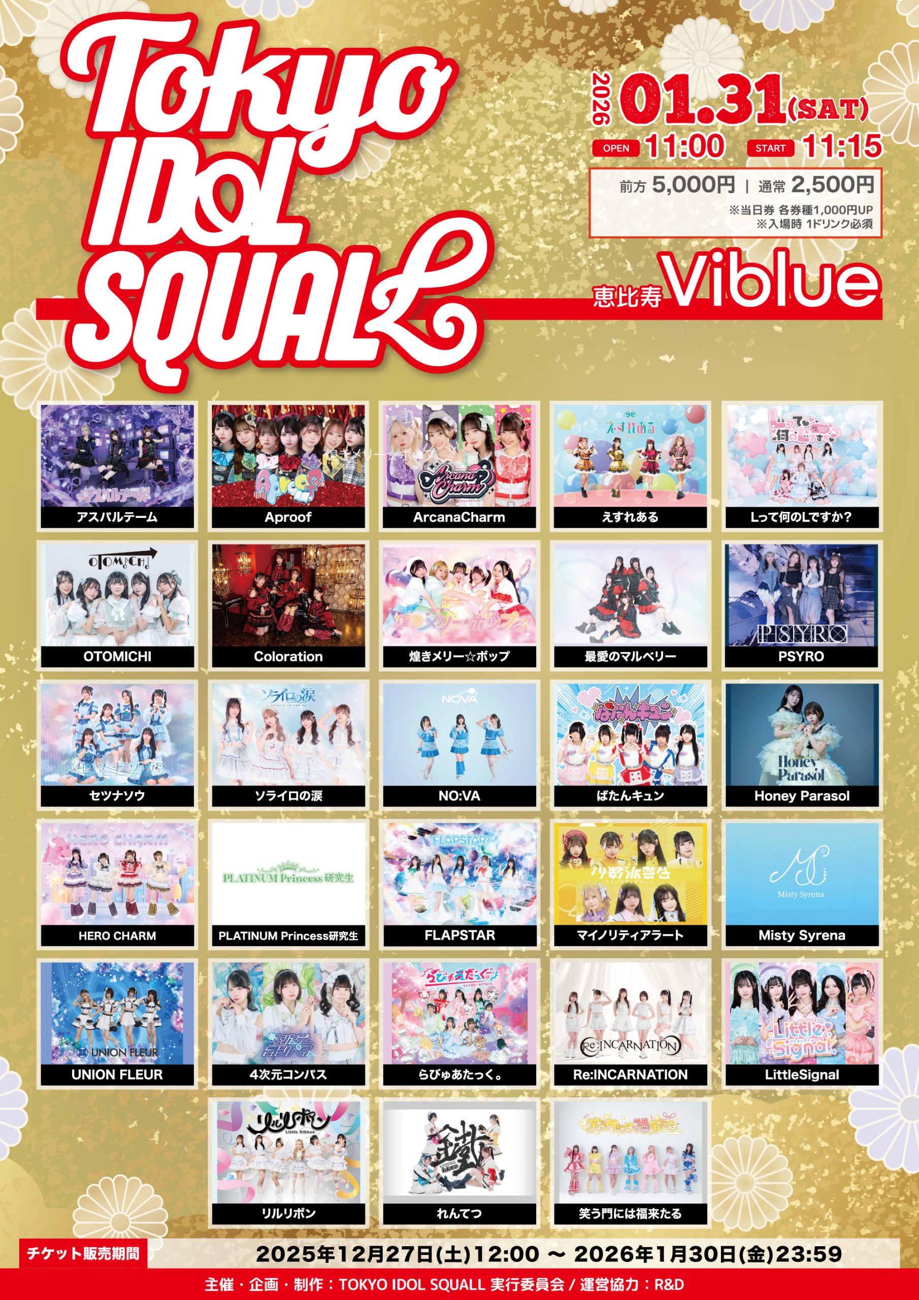 出演者 アスパルテーム / Aproof / ArcanaCharm / えすれある / Lって何のLですか? / OTOMICHI / Coloration / 煌きメリー☆ボップ / PSYRO / 最愛のマルベリー / セツナソウ / ソライロの涙 / NO:VA / ばたんキュン / Honey Parasol / HERO CHARM / PLATINUM Princess研究生 / FLAPSTAR / マイノリティアラート / Misty Syrena / UNION FLEUR / 4次元コンパス / らびゅあたっく。 / Re:INCARNATION / LittleSignal / リルリボン / れんてつ / 笑う門には福来たる