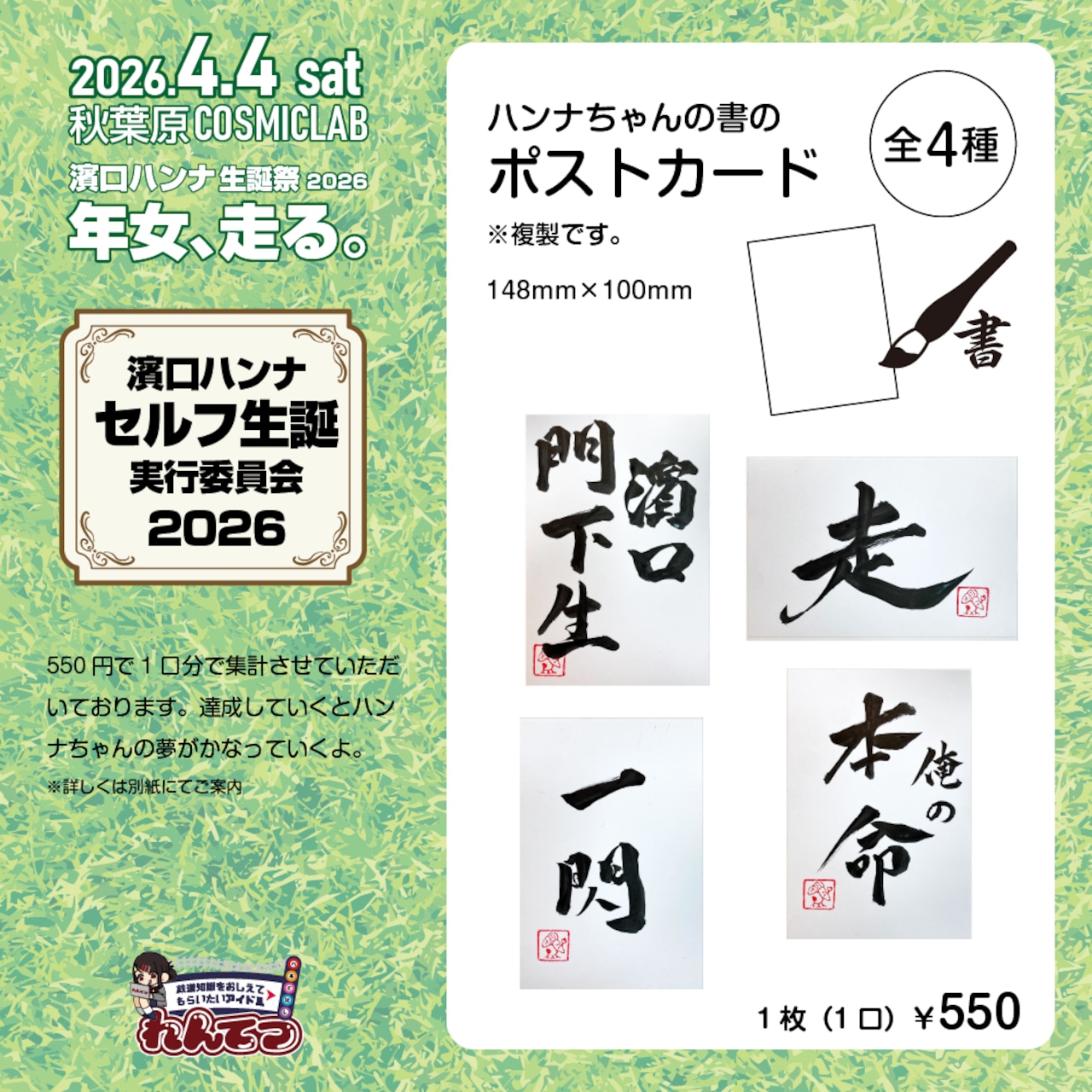 ・ハンナちゃん書のポストカード全4種 ¥550(1口)