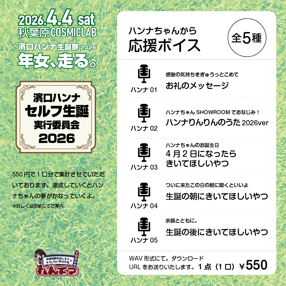 ・ハンナちゃんからの応援ボイス全5種 ¥550(1口)