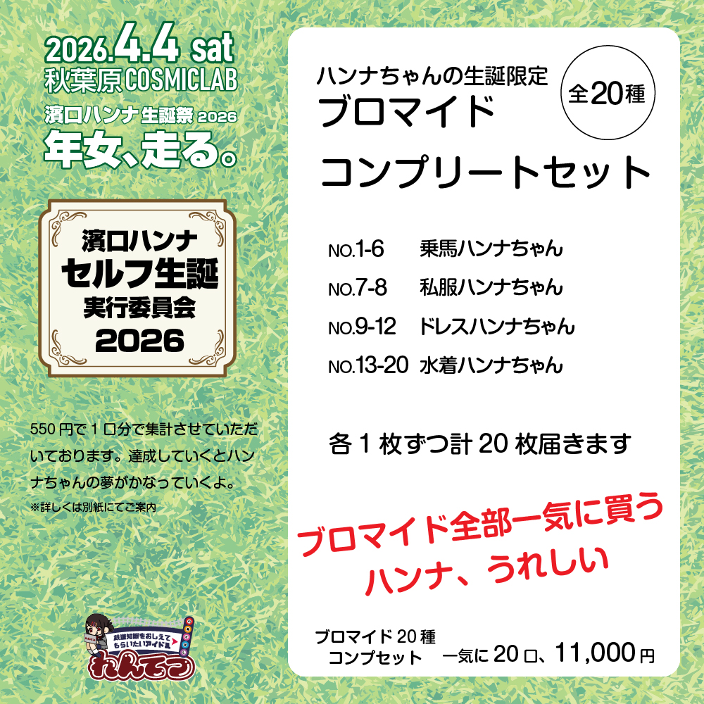 ・ハンナちゃん生誕限定ブロマイドコンプリートセット ¥11,000(20口)